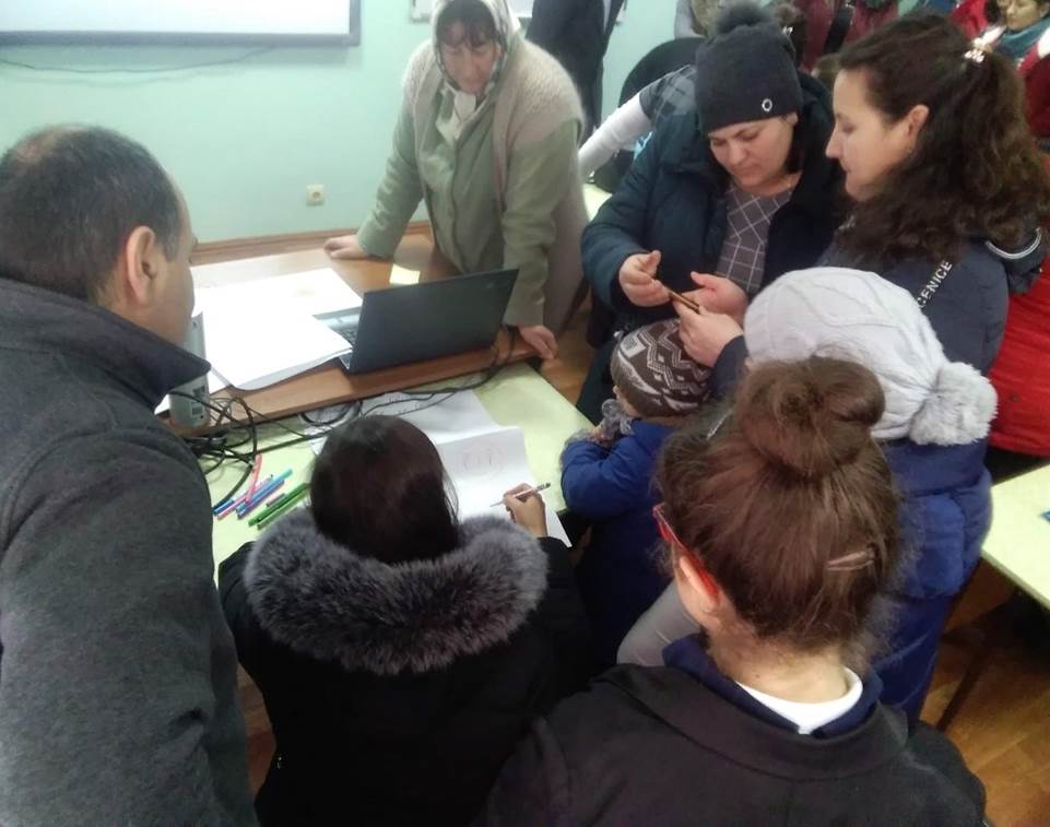 Inițial o echipă mică din 5 persoane, crescută până la 10 persoane, (în prezent echipa numără 18 membri, 9 femei – 50%, 9 bărbați 50 %!!!, 4 tineri (1 bărbat, 3 femei) mai jos de 30 ani 22%, 4 persoane cu nevoi speciale, 5 persoane mai în vârstă de 60 de ani), a efectuat multe și diverse activități pentru a include comunitatea în identificarea problemei: au organizat mini-ateliere cu cetățenii, au efectuat sondaje cu localnicii și cu agenții economici, au analizat răspunsurile, au prezentat informații generale în cadrul dezbaterilor publice privind situația din comunitate. Astfel, în comun au stabilit problema stringentă și au determinat soluțiile: să creeze un parteneriat cu APL pentru a soluționa chestiunea încălzirii în gimnaziul din localitate în perioada rece a anului, asigurând un regim termic adecvat cerințelor și crearea condițiilor echitabile pentru elevi și cadrele didactice. S-au decis să mobilizeze comunitatea pentru demontarea ferestrelor vechi și montarea celor noi, care să mențină căldura în incintă.