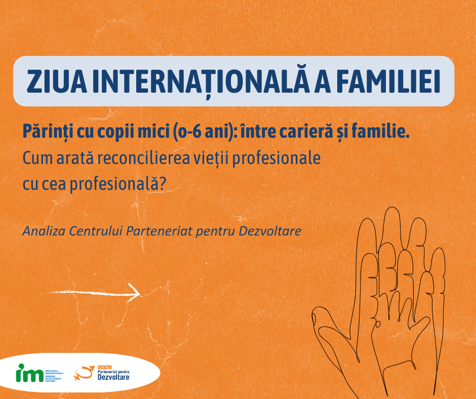 De Ziua Internațională a Familiei, Centrul Parteneriat pentru Dezvoltare lanseză analiza responsabilităților parentale și accesul la servicii de sprijin pentru a identifica barierele care împiedică reconcilierea vieții personale cu cea profesională în rândul părinților cu copii mici. Analiza arată că a crescut rata de ocupare a femeilor cu copii de 0-6 ani, de la 39,4% în 2019 la 41,1% în 2023, totuși această rată de ocupare a femeilor cu copii mici este cu aproximativ 30% mai mică decât cea a femeilor fără copii de aceeași vârstă.